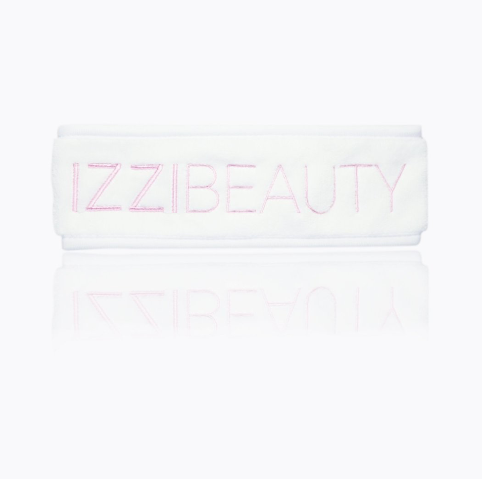 De IZZI Beauty-hoofdband houdt het haar stevig op zijn plaats tijdens je huidverzorgingsroutine.
